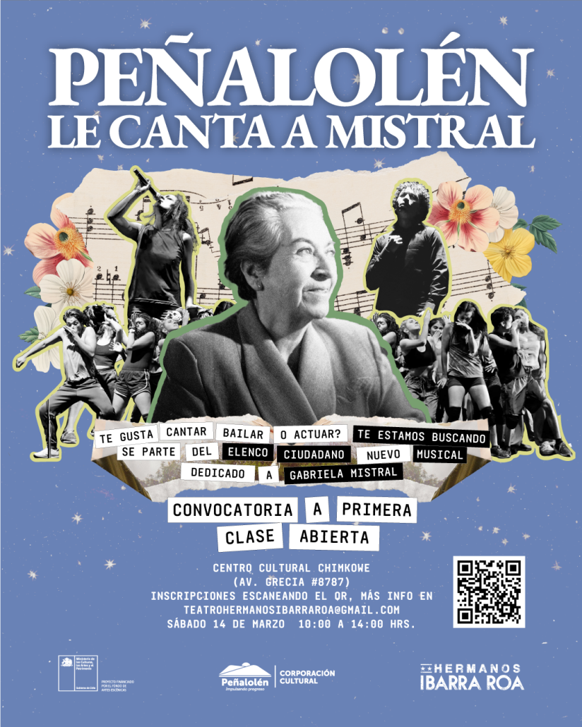 Santiago, 10 de febrero de 2026.- La Compañía Hermanos Ibarra Roa y la Corporación Cultural de Peñalolén invitan a vecinos y vecinas a conformar un elenco ciudadano que montará una obra musical inspirada en la vida y obra de Gabriela Mistral, Premio Nobel de Literatura.